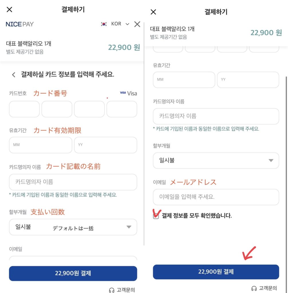 新規登録するためには韓国の電話番号が必要だったので、電話番号がない私はゲスト購入で購入しています。