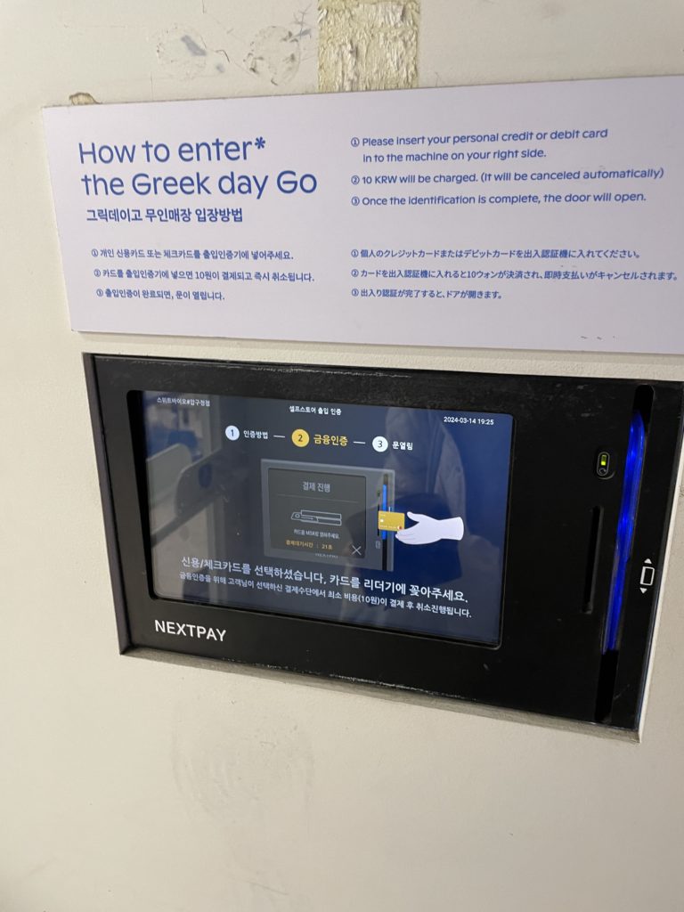 韓国の人たちの出入りはあったので、扉が開いたタイミングで一緒に中に入れれば購入できたのかもしれません。