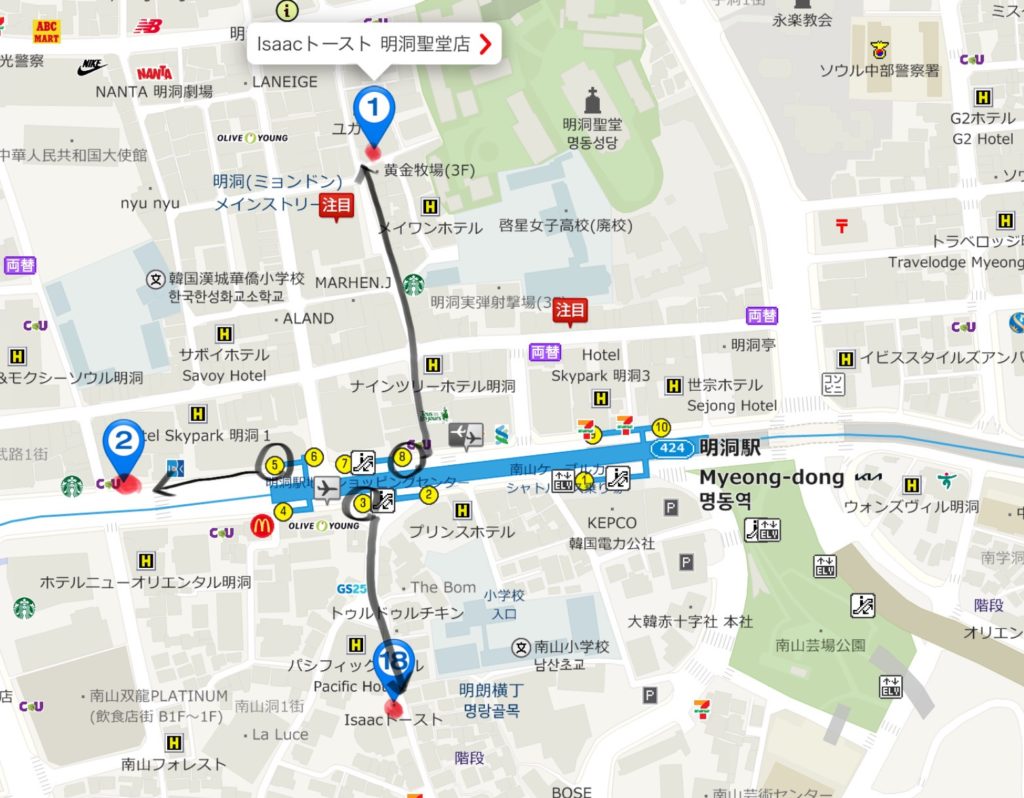 isaac toastは明洞駅周辺に3店舗あります。