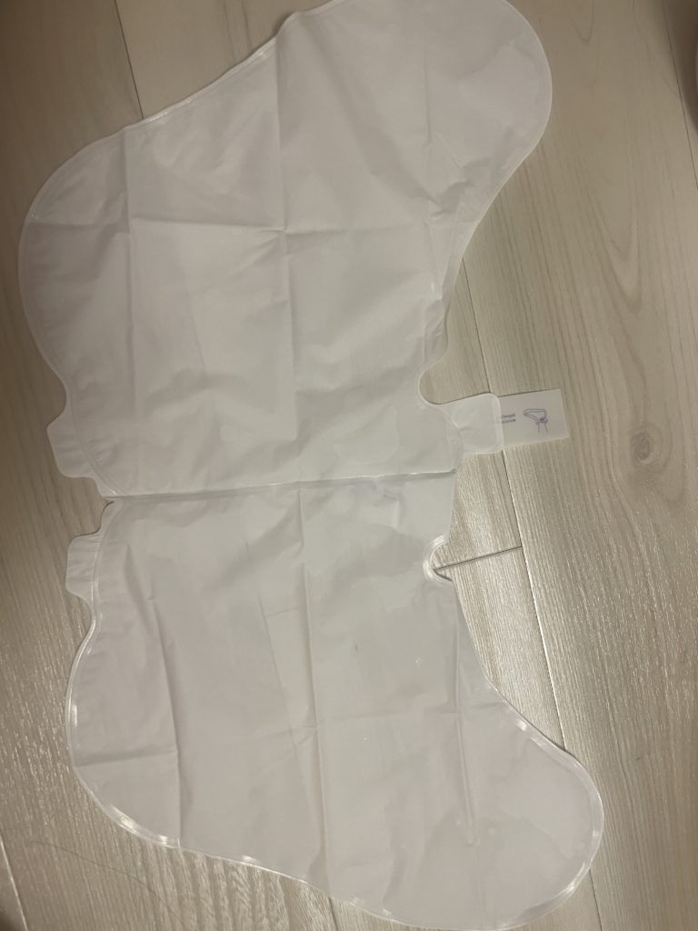 パックを開封すると密封された足用のパックが入っているので、左右分離する。