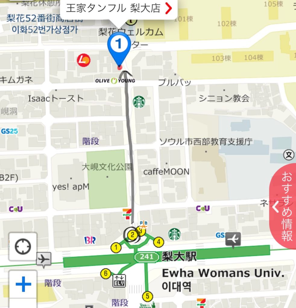 梨大駅2番出口からひたすらまっすぐ行くと辿りつきます。