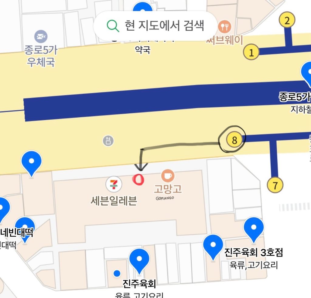 鍾路5街駅の8番出口を出るとすぐです。