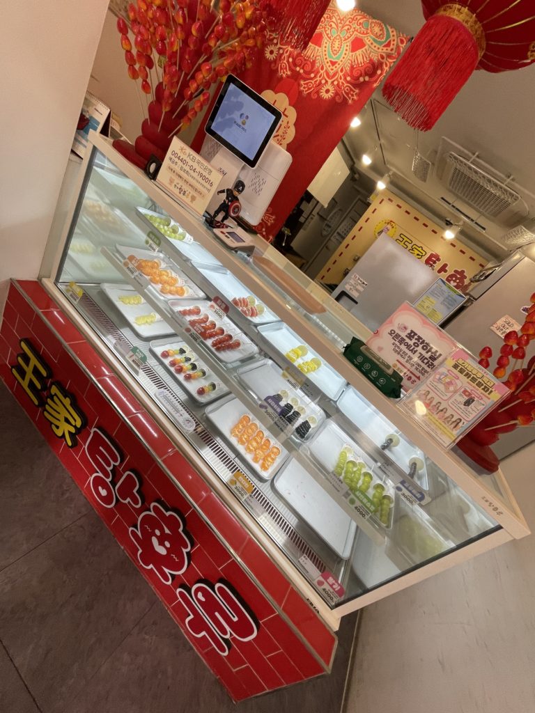 韓国には街中にタンフル専門店がたくさんあります。