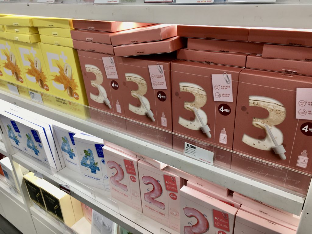 オリーブヤングは金額が高い(定価設定)なのでQoo10や楽天市場で買った方が安いんじゃない!?と思う商品も多いです。ナンバーズインのマスクに関しては日本で買う方が安かったり。笑