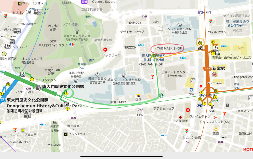 新堂駅の方が近いですが、東大門歴史文化公園駅からも歩ける距離なので使い勝手の良い駅から向かうといいと思います。